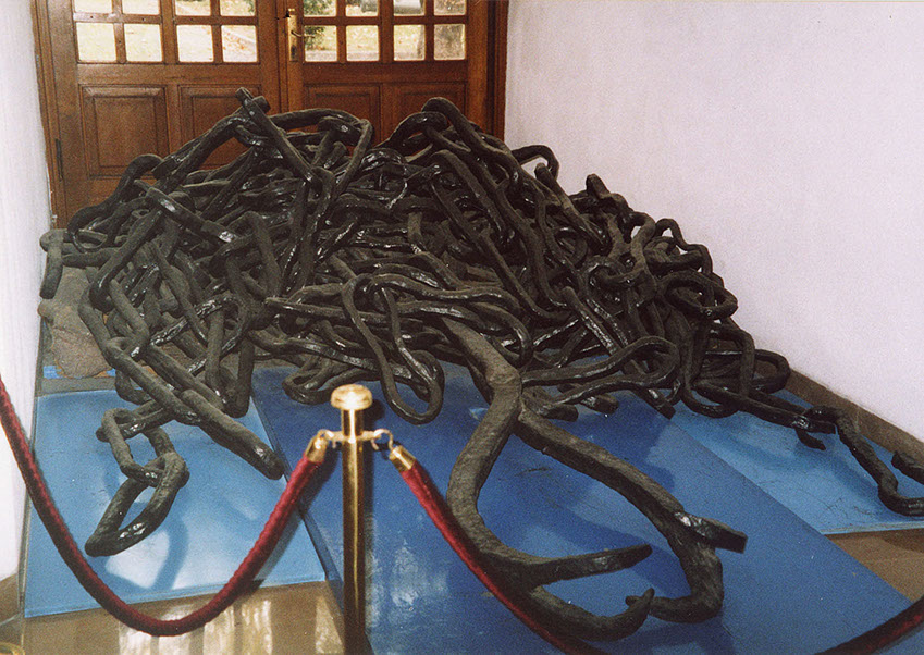 This cannon was probably used during the siege. The stone ball weighs 285kg