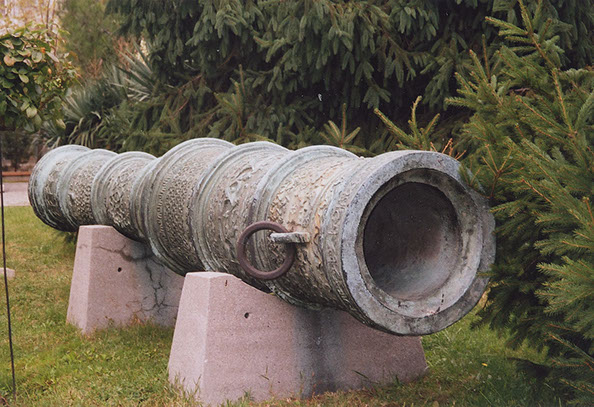This cannon was probably used during the siege. The stone ball weighs 285kg