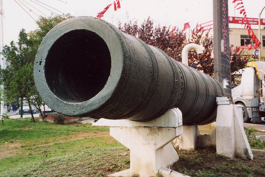This cannon was probably used during the siege. The stone ball weighs 285kg