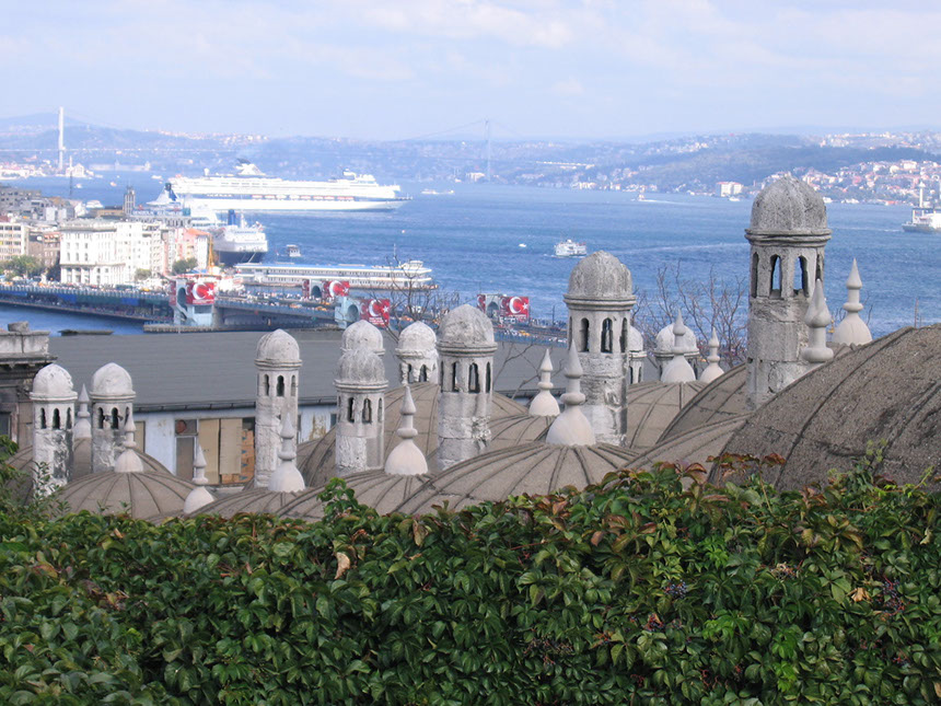 Istanbul: From the terrace of the Suleymaniye, a view over the mouth of the Golden Horn and the Bosphorus, the centre of Ottoman naval power